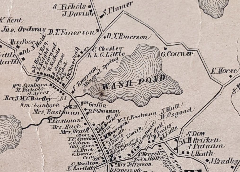 1857 Map showing Emerson Mineral Springs on the East end of Wash Pond